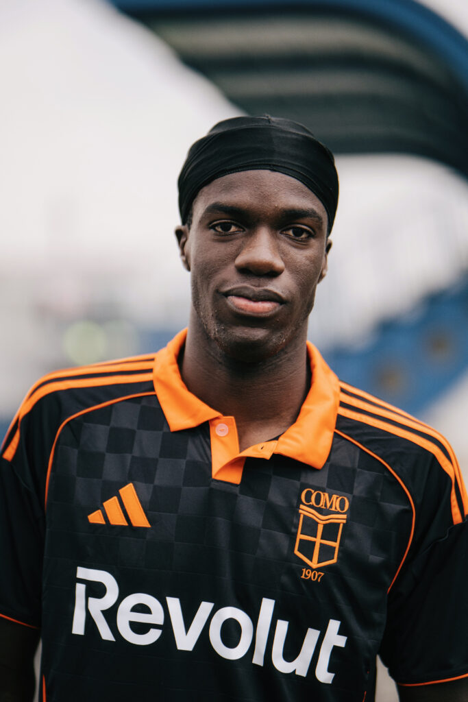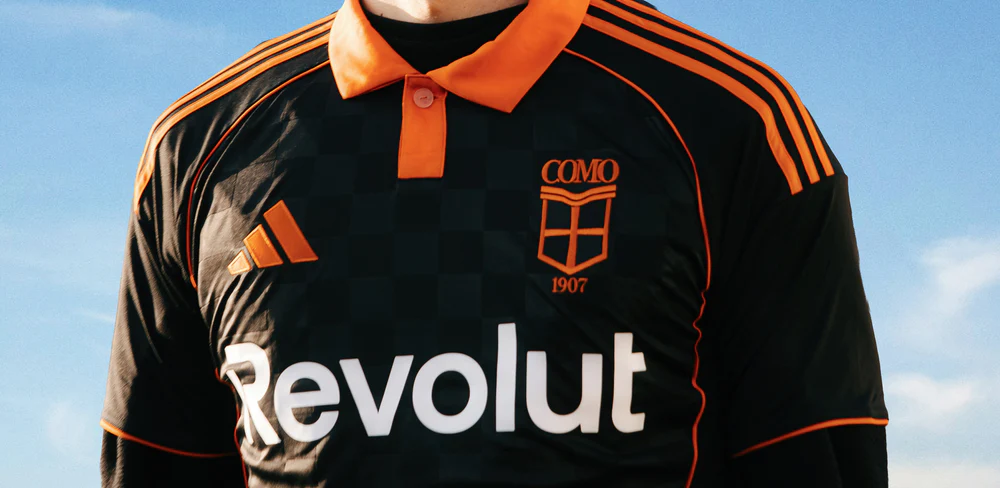 Como 1907 continue redefining what a football kit can be. Under Rhuigi Villaseñor’s creative leadership, the 25/26 Third Jersey arrives as another study in identity, elegance and the atmosphere of life on Lake Como. Built by adidas, the shirt lands in deep black with a vivid orange collar and detailing, a colour language that feels unexpected yet completely aligned with the club’s world.